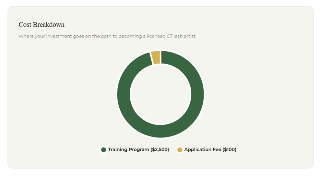No surprises. Here’s every dollar you’ll spend to get your Connecticut lash license.